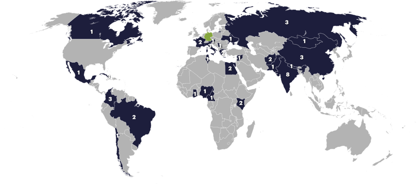 Among others, the scholarships were granted by: AvH (Alexander von Humboldt Foundation), CAPES (Capes Humboldt Research Fellowship), CSC (China Scholarship Council), CNPq (National Council for Scientific and Technological Development in Brazil), DAAD (German Academic Exchange Service), Erasmus (EuRopean Community Action Scheme for the Mobility of University Students), FNF (Friedrich Naumann Foundation), DFG-funded Research Training Groups, KAS (Konrad Adenauer Foundation) Saxony-Anhalt State Graduate Funding, MOET (Vietnamese Ministry of Education and Training), RLS (Rosa Luxemburg Foundation), Russian Research Foundation, ANID (Chilean National Agency for Research and Development) and SERB (Indian Science and Technology Committee).