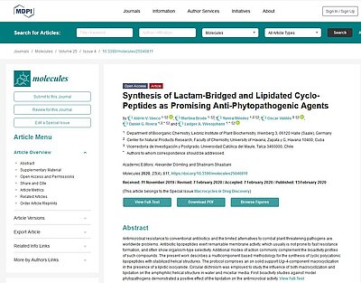 Together with Cuban and Chilean scientists, IPB chemists have developed a multicomponent-based approach for the synthesis of cyclic polycationic lipopeptides with stabilized helical structures. The protocol comprises an on solid support Ugi-4-component macrocyclization in the presence of a lipidic isocyanide. Antibiotic lipopeptides exert remarkable membrane activity, which usually is not prone to fast resistance formation, and often show organism-type selectivity. First bioactivity studies against model phytopathogens demonstrated a positive effect of the lipidation on the antimicrobial activity.
