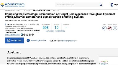 The IPB chemists Pascal Püllmann and Martin Weissenborn have now found a remedy. The gene shuffling system they designed can be used to find the best genetic conditions for the expression of enzymes in yeast. For a first test of the system, the Halle scientists combined the genes of three known UPOs with eleven promoter and 17 signal peptide sequences each and introduced the resulting constructs into the industrially used expression yeast Pichia pastoris. The resulting libraries were then screened for UPO-specific activities using colorimetric assays. This allowed the identification of the best promoter-signal peptide combinations, which resulted in good UPO yields upon yeast expression.