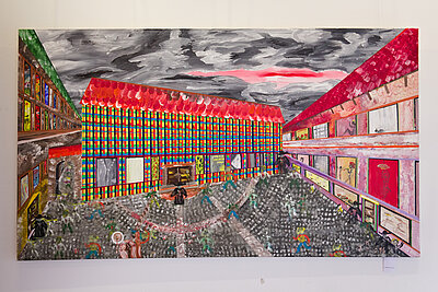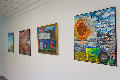 It seems to be busy in the mind of the painter Ludwig-Lutz Kampelmann from Halle. With his exhibition "Alles aus meinem Kopf" the stage technician of the Halle opera house gives at least a small insight into his moving world of thoughts, which he releases out of his head on dark colored canvases. Themes and techniques tumble on these projection surfaces; there is much to discover and the abyss to the Magic is always present. His paintings can be viewed at the institute until February 2021.