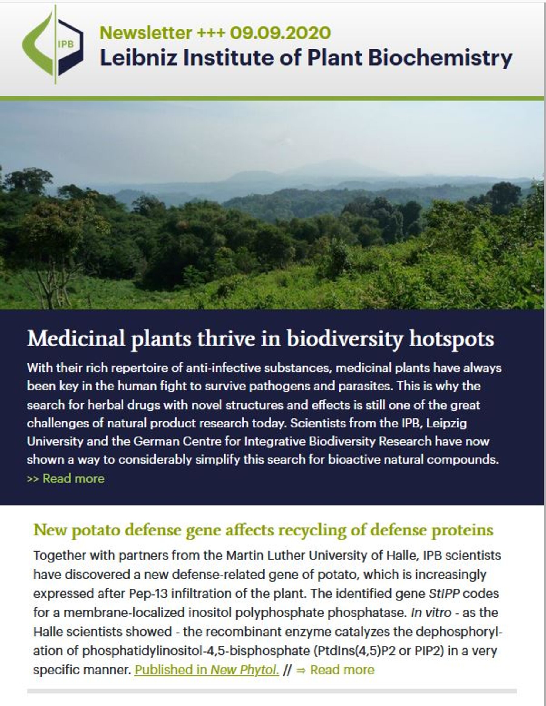 The IPB now publishes a new online newsletter with interesting topics on science, events and personalia. Depending on the target audience, we will release different newsletter editions in English and German that use either generally understandable or more professional language. The newsletters will be sent to selected recipients 2-4 times a year.