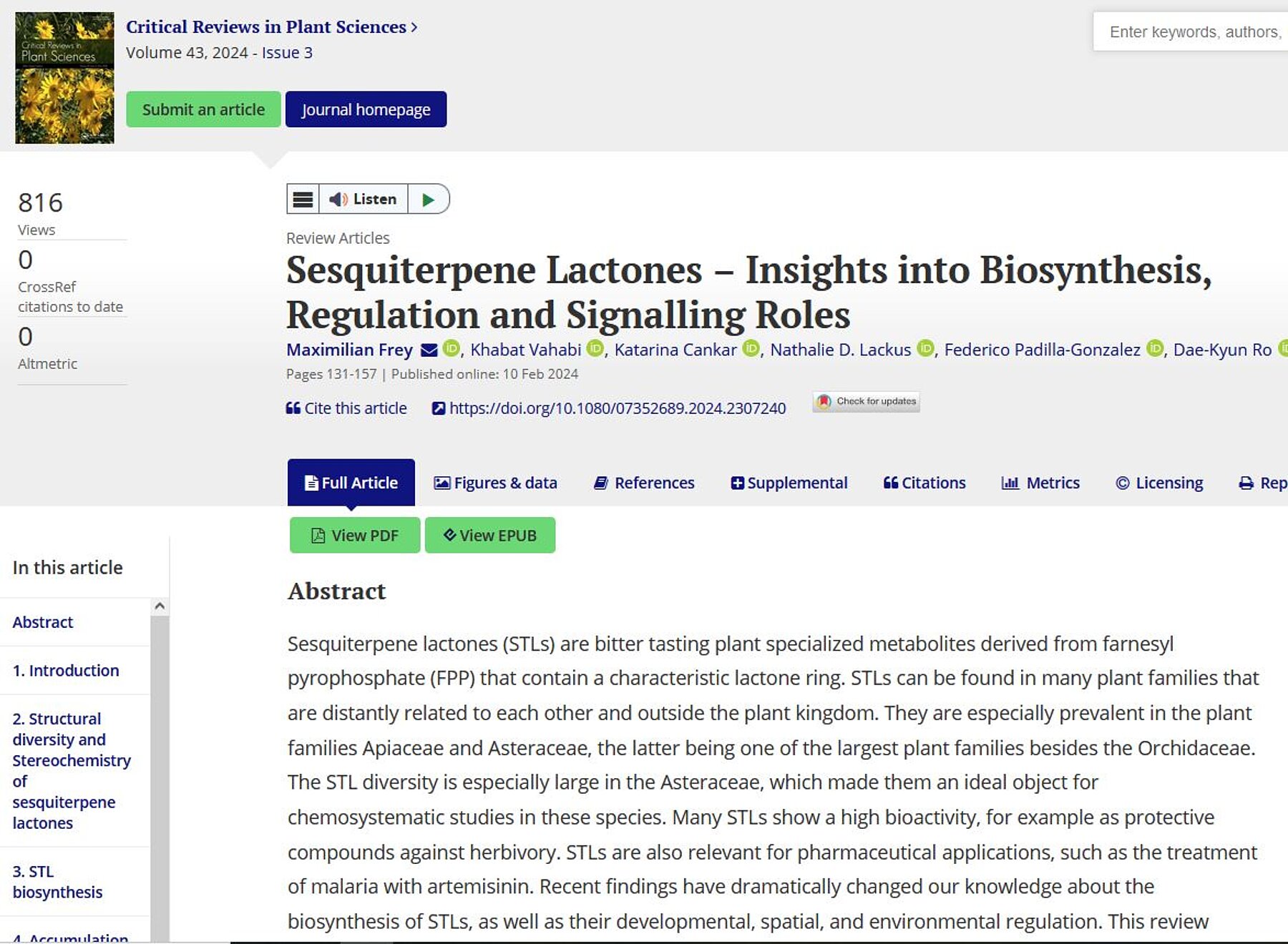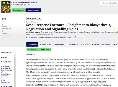 IPB scientists, together with Dutch and Canadian partners, have recently published a review on sesquiterpene lactones (STLs), in which they discuss in detail the biosynthesis, regulation and signaling function of these special natural products. Sesquiterpene lactones are mostly bitter-tasting phytochemicals with a 15-carbon backbone, characterized by their distinctive lactone ring. Approximately 5000 STLs are known to date, most of which are found in Asteraceae. The great structural diversity of STLs makes them an ideal target for chemosystematic and ecological studies. Many STLs are biologically active. They have antibiotic, antitumor, and anti-inflammatory properties. In plants, STLs act primarily as defense substances against herbivores and microorganisms. In humans, this group of substances is increasingly becoming the focus of pharmaceutical development due to their diverse effects. For example, the antimalarial drug artemisinin from mugwort (Artemisia annua) belongs to the group of sesquiterpene lactones.