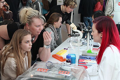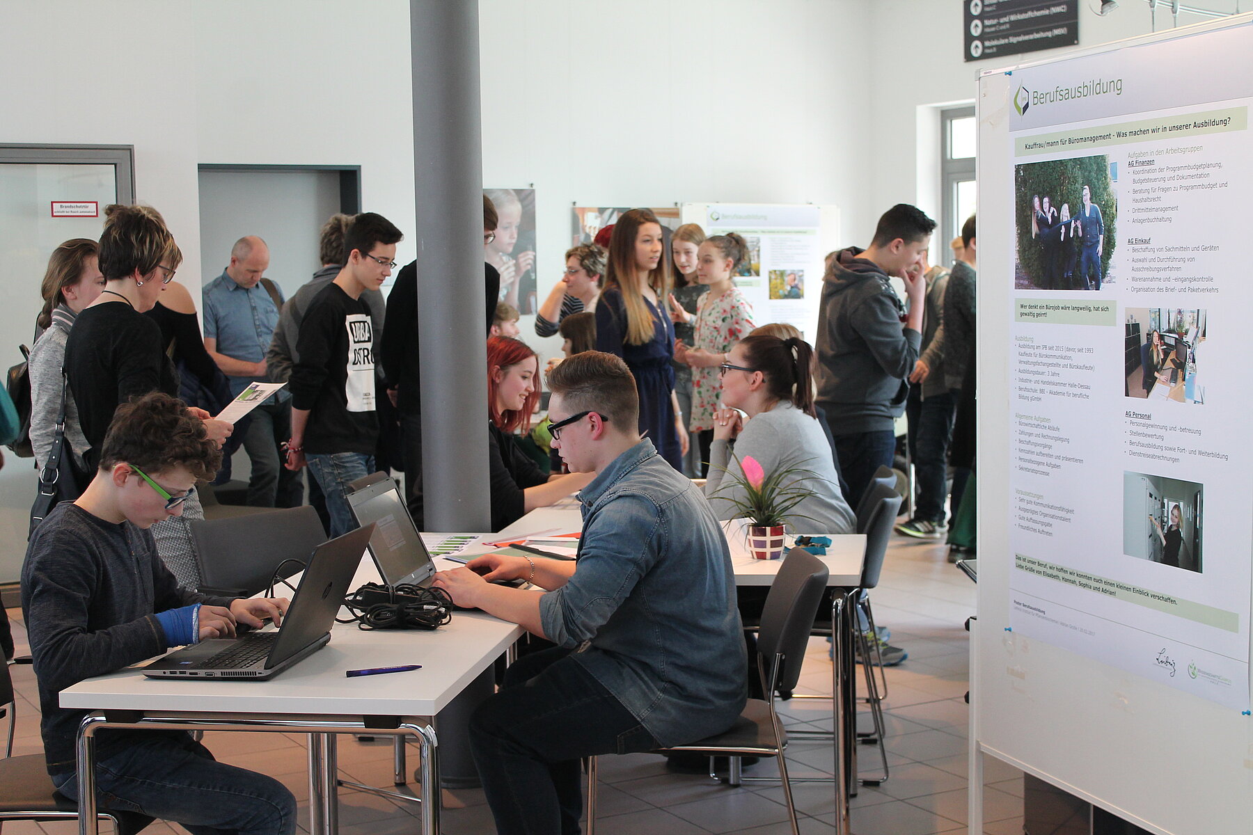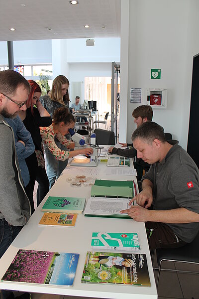 What are the duties of an IT specialist? What does a biology laboratory actually look like? What are the skills required to become a gardener? On the “Day of Vocational Training”, the IPB foyer was teeming with students, parents and interested people that wanted these questions answered. The Employment Agency organizes this annual event together with local companies to assist students early on in their vocational choice. As in previous years, the IPB presented itself as an institution that provides vocational training to become a gardener, biological laboratory technician, IT specialist or office management assistant. The IPB’s trainee instructors and trainees explained the different professions to visitors using posters designed by the current IPB trainees themselves. Students could easily engage in conversations about the training process and try out pipettes, planting pots and computers. While Katja Baumann-Kaschig offered tours through a laboratory, Christian Müller showed people around on the IPB’s outside grounds to explain everything about the gardener’s training. In particular, he stressed the high standard and broadness of training at the IPB. "For example, only few corporations can teach their trainees how to prune vines", he pointed out while showing the recently planted vines. On that day, around 70 visitors used the opportunity to get to know the IPB, and maybe some of them will return as trainees.