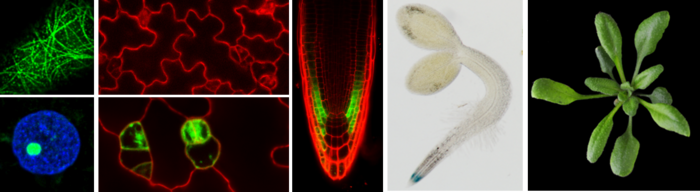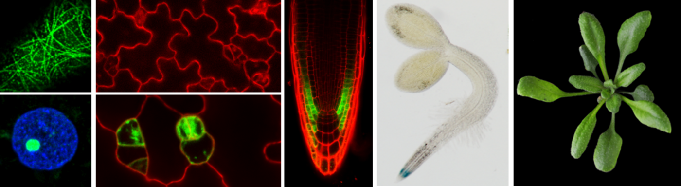 Research in the group Cellular Coordination focuses on understanding processes and underlying principles that regulate plant growth and development. In plants, growth is restricted by the cell wall that surrounds cells outside the plasma membrane and physically glues neighboring cells. Deposition of cell wall material is mediated by the plant cytoskeleton, comprised of actin filaments and microtubules. In interphase cells, cortical microtubules serve as tracks for plasma membrane-localized cellulose synthase complexes. The orientation of cortical microtubules thus determines the direction of cellulose deposition and consequently of cell expansion. Plant-specific microtubule arrays additionally contribute to establishment of division planes and formation of new cell plates during cell division. Networks of microtubule-associated proteins act in concert to coordinate microtubule organization, dynamics and, e.g., plasma membrane tethering of microtubules, and serve to integrate incoming signals from developmental and environmental stimuli into reorganization of the microtubule cytoskeleton.
