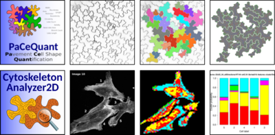 Our cell biological assays frequently generate large amounts of image material that are the basis for comparative analyses. To facilitate robust, unbiased, and high-throughput image analysis and statistical evaluation we collaborate with computer scientists and bioinformaticians at the MLU Halle-Wittenberg and the German Center for Integrative Biodiversity Research (iDiv) to develop bioinformatics tools. We aim to generate user-friendly open source tools for batch processing of large image data sets, which are released in the frame of the ImageJ plugin Microscopy Image Analysis Toolbox (MiTiBo, http://mitobo.informatik.uni-halle.de). For statistical evaluation and graphical visualization we provide supplemental R scripts. So far, we have released PaCeQuant, a tool for automatic quantification of cell shapes (1, 2), and CytoskeletonAnalyzer2D, which enables quantification of global microtubule patterns in complex shaped cells (3, 4, 5). Recent projects involve: