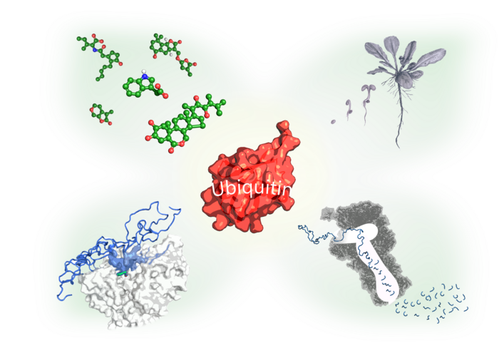 In the Signal Integration Group we are interested in a fascinating nuclear mechanism for small molecule perception in plants that depends on ubiquitin-mediated protein degradation (UPS). Eukaryotic cells utilize an enzymatic cascade that directly recruits a protein target enabling the attachment of one or various ubiquitins with specific topologies. This serves as a targeting signal for degradation by the proteasome, for instance.