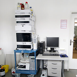 Das 1260 Bioinert HPLC System ist mit einem Agilent 1290 DAD Detektor (Absorption im UV und sichtbaren Bereich) und einem Agilent 1260 Fluoreszenzdetektor ausgestattet.