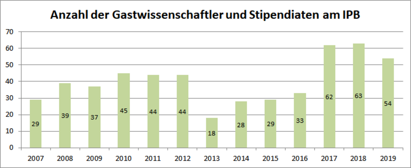 Im Gegenzug wirkt das IPB in die Forschungsarbeit der Herkunftsländer hinein, vor allem durch die Ermöglichung von Forschungsaufenthalten und Promotionen der Gastwissenschaftler am Institut sowie umgekehrt durch Forschungsaufenthalte deutscher Wissenschaftler in den Gastländern. Für seine Größe – das Institut beschäftigt etwa 180 Mitarbeiter, davon 100 Wissenschaftler – hat das IPB einen hohen Ausländeranteil von etwa 30 Prozent der wissenschaftlichen Mitarbeiter. Allein in Lateinamerika sind mehr als zehn ehemalige Doktoranden des IPB mittlerweile Professoren, vor allem an brasilianischen und kubanischen Hochschulen; Vergleichbares gilt für Südostasien. Inhaltlich und organisatorisch werden die Kontakte oft bis weit nach der Promotion oder dem Postdoktorat des Gastwissenschaftlers fortgeführt; es kommt zu gemeinsamen Projekten und Publikationen, sodass einige Gastländer von dieser inhaltlichen, ideellen und finanziellen Förderung auch langfristig stark profitieren.